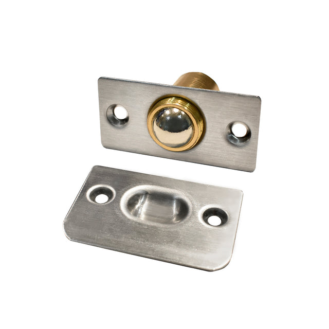 Se le puede ajustar la presión del balin girando la tapa del resbalón. Se recomienda en puertas diversas de madera o metal, como mosquiteras, en closet, barandales, etc.