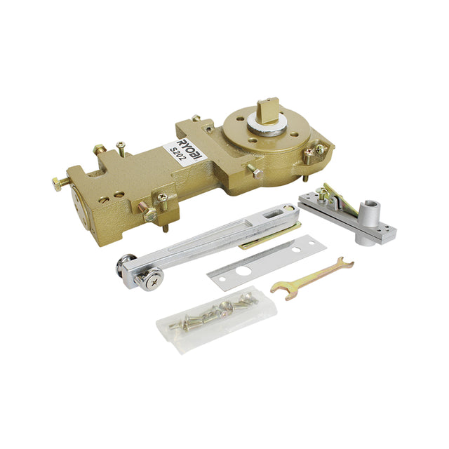 Bisagra de piso Ryobi modelo S202N, con doble válvula para regular la velocidad de cierre y presión. Es ideal para puertas de cristal templado. En cuanto a la bisagra de piso Ryobi modelo 202N (Sin freno), es ideal para accesos con aire acondicionado ya que cierra desde cualquier apertura. La bisagra japonesa más vendida en México, probada en laboratorio por más de 1´000,000 de ciclos.