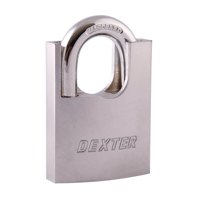 Candado de gancho protegido marca Dexter. Este dispositivo es de Alta Seguridad con alta resistencia al corte, dificulta la apertura con ganzúas.