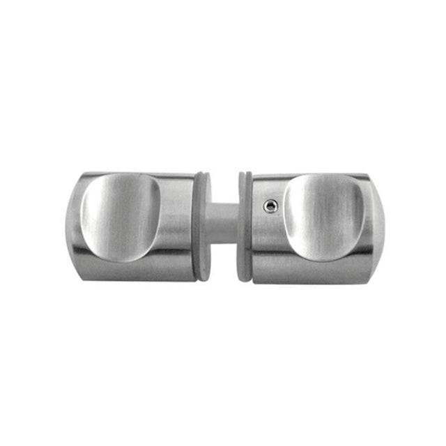 Jaladera de perilla doble para puertas de cristal templado; modelo adaptable para puertas fijas o abatibles en acabados níquel satín.