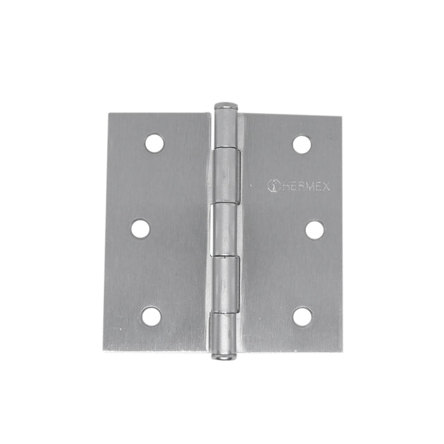 Bisagra de acero cuadrada en acabado cromo mate pulido.