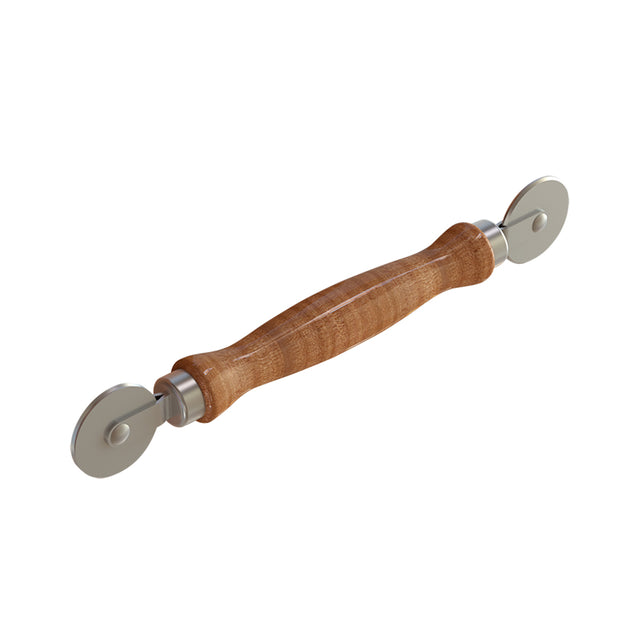 Carrucha de madera con rodaja de acero para fijación de vinilo.