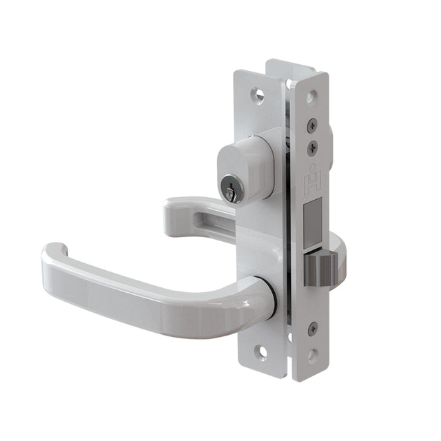 Chapa doble manija Herralum, con cilindro llave-llave para puertas con perfiles de aluminio.