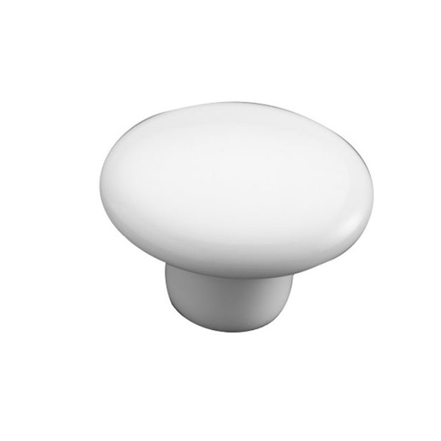 Jaladera estilo botón fabricado de cerámica color blanco.