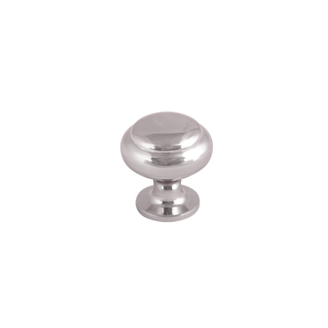 Jaladera de botón diseño contemporáneo en acabados latón pulido y níquel satín; ideal para instalar en cajoneras para muebles de recamara o closets.