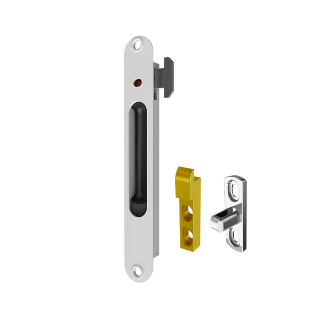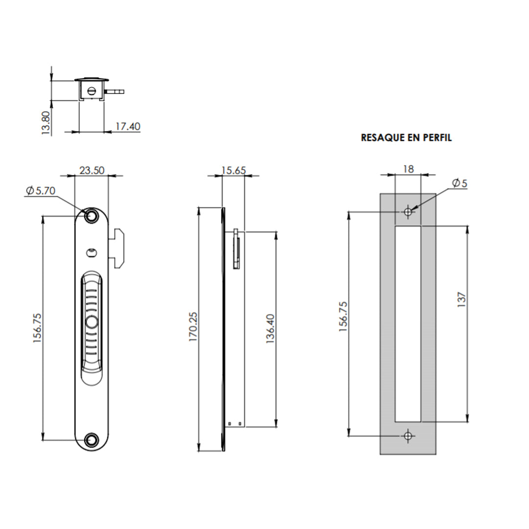 Jaladera de embutir con cierre tipo europeo y gancho de acero incluido; incluye tornillería para su correcta instalación.