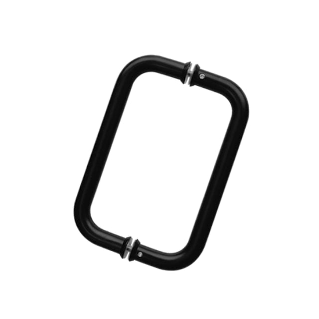 Jaladera para puerta de cristal en acabo negro mate; ideal para instalar en exteriores e interiores.