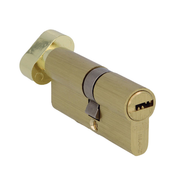 Cilindro de seguridad en latón, 6 pines y leva de 15 mm con sistema antitaladro.