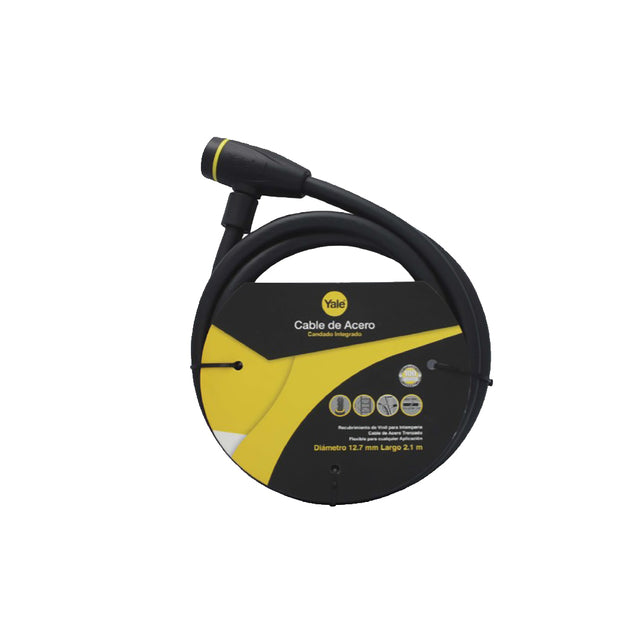 Cable de acero con candado integrado Yale, ideal para resguardar cajas de herramientas, bicicletas, motocicletas, autos, casilleros, puertas industriales, zaguanes, rejas, cortinas metálicas, etc. Para usos generales, brinda protección a interiores y exteriores.