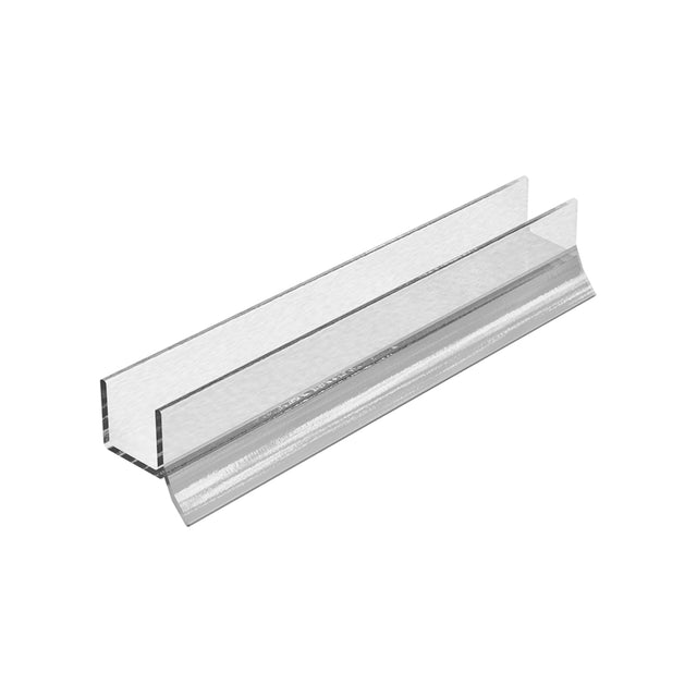 Perfil de policarbonato Xochimilco, con aleta lateral flexible para cristal de 9 mm de espesor y con 2.50 m de largo.