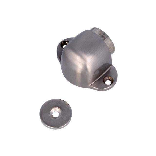 Tope de zamak para retención de puertas de paso magnético. Incluye accesorios de fijación.